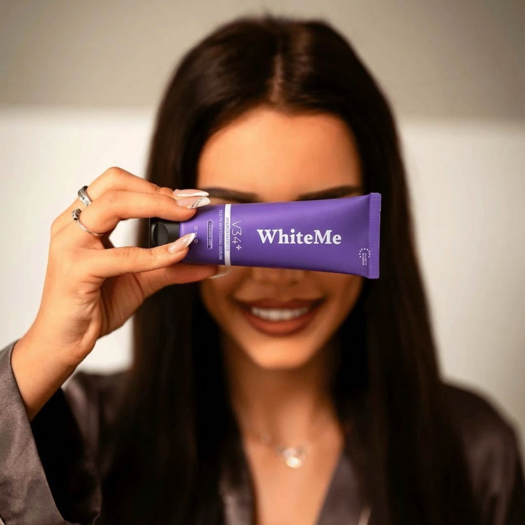 Серумът V34 работи като коректор, но за зъбите. Цветовата корекция се основава на това, че лилавото и жълтото са противоположни нюанси.