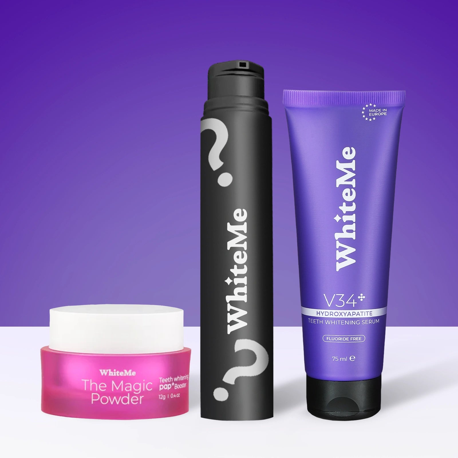 Нашата новаторска избелваща пудра PAP+ превръща любимата ви паста за зъби в ефективно ежедневно избелващо средство, което ефикасно премахва жълтите петна.